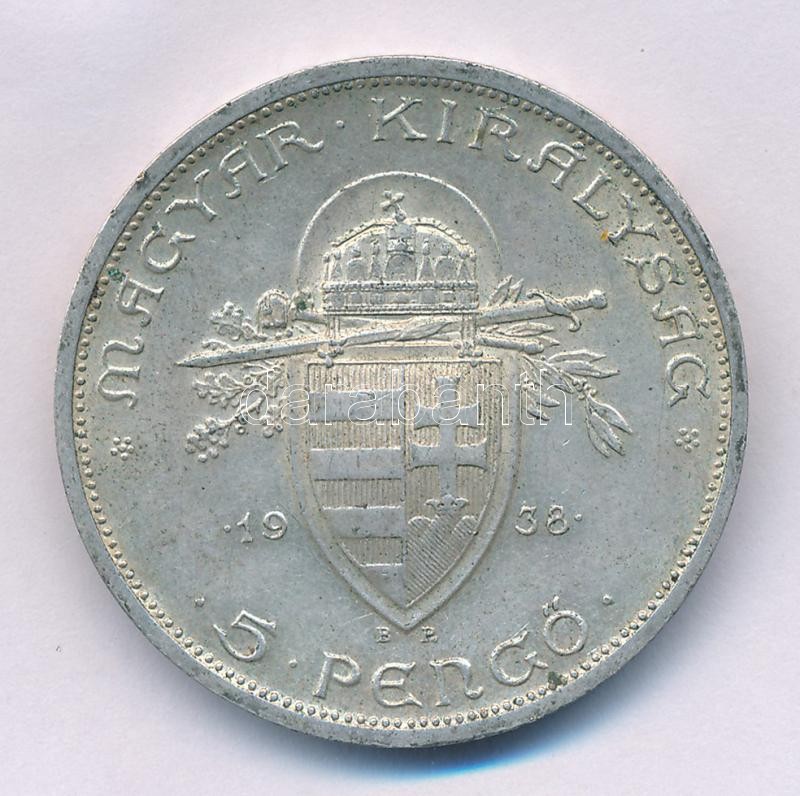 Leírás: 1938. 5P Ag "Szent István" T:1- kis patina Adamo P8.1