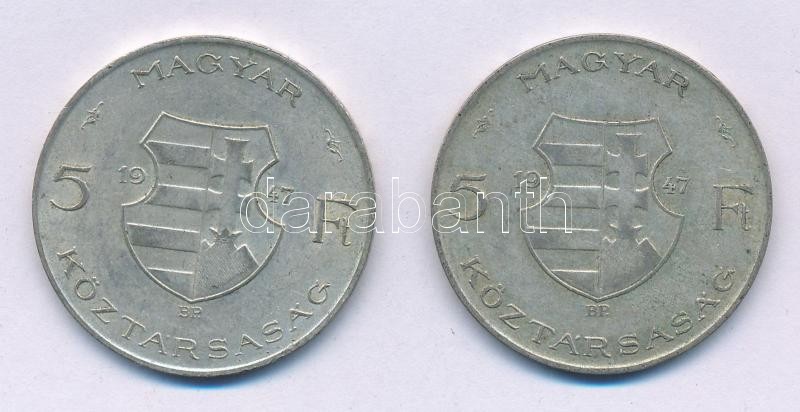 Leírás: 1947. 5Ft Ag "Kossuth" (2x) T:2-,3 patina