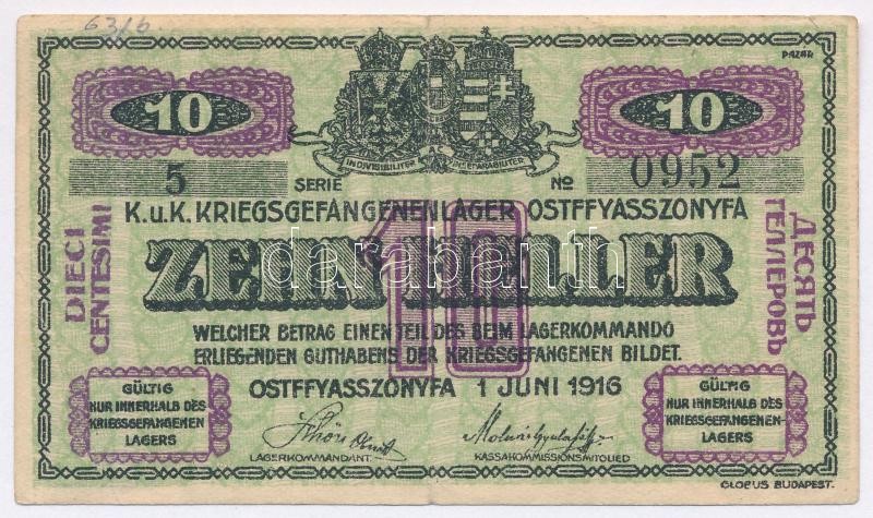 Hungary / Ostffyasszonyfa / POW Camp June 1st 1916. 10 Heller arabic series and serial numerals C:F