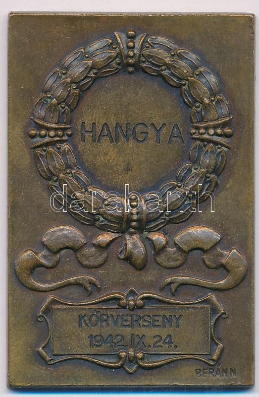 Leírás: 1942. "Hangya körverseny 1942.IX.24." Br díjplakett "BERÁN N. BUDAPEST DÖBRENTEI U.2." gyártói jelzéssel (53x36mm) T:1-,2