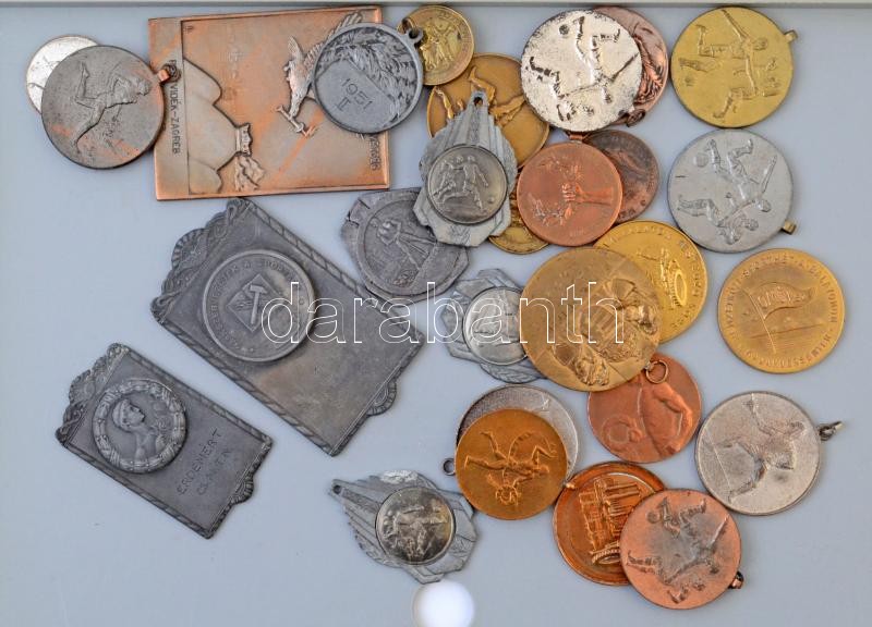 Leírás: 28db-os vegyes díjérem és sportplakett, közte 1929. "Műegyetemi Lövészegyesület 1919-1929 / Miniatür I" Br emlékérem (46mm) T:vegyes