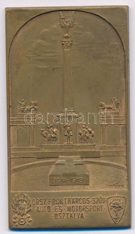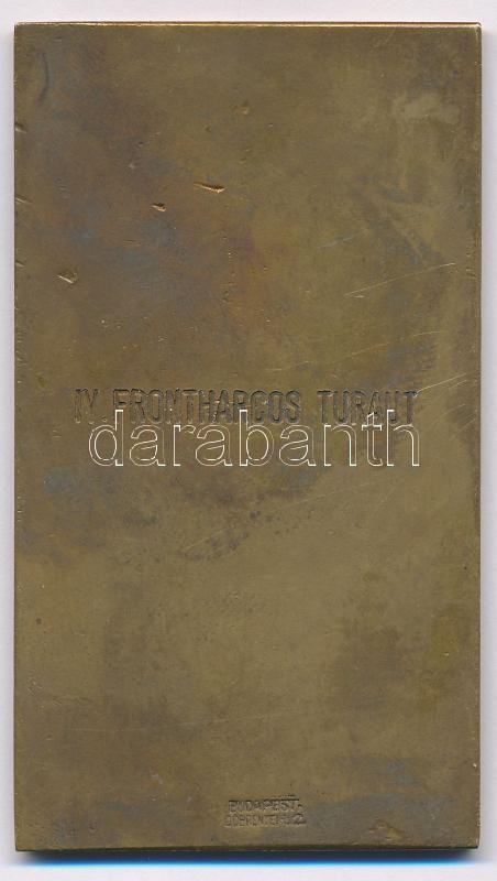 Leírás: Berán Nándor (1889-1965.) DN "ORSZ(ágos) FRONTHARCOS SZÖV(etség) AUTO ÉS MOTORSPORT OSZTÁLYA / IV. FRONTHARCOS TURAUT" Br emlékplakett, hátoldalán "BUDAPEST DÖBRENTEI U. 2." gyártói jelzéssel (41x73mm) T:2-