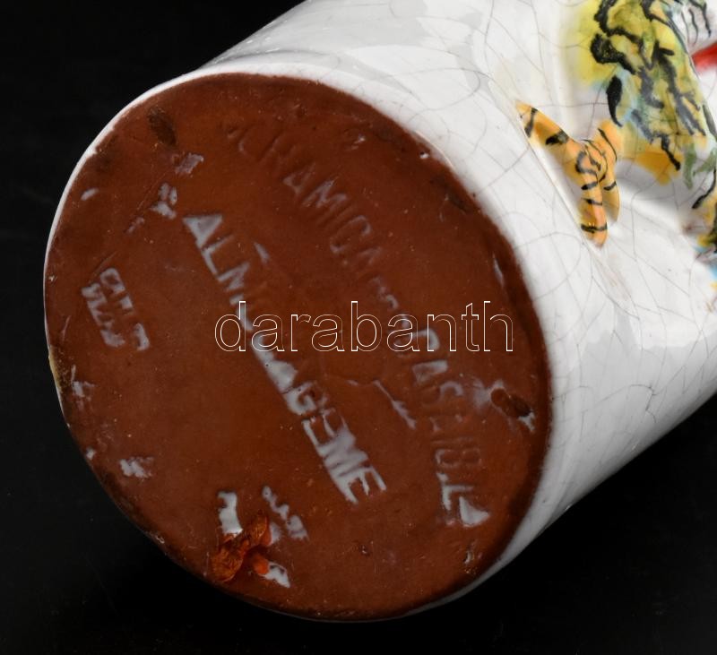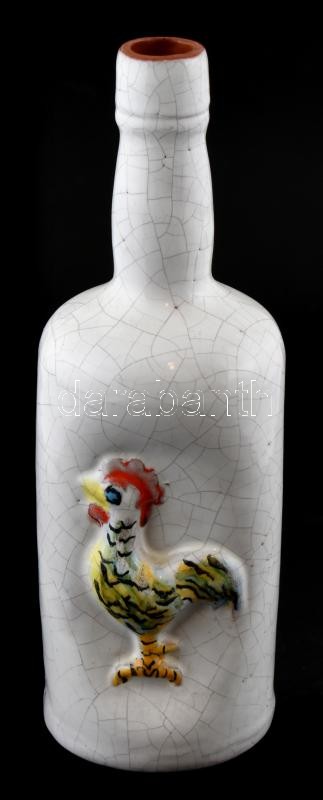 Leírás: Kakasos kerámia palack, repesztett mázas, kézzel festett, jelzett, m: 28 cm