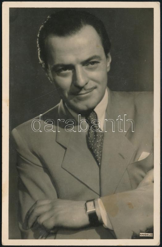 cca 1942 Jávor Pál színész portréja, Angelo (1894-1974) budapesti fényképész és fotóművész műtermében készült felvétel, a Rákosi Kiadó gondozásában megjelent 581. sz. fotólap, 13,8x9 cm