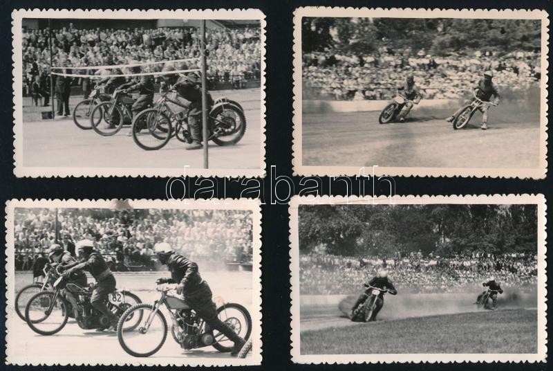 Leírás: cca 1950 Salakmotorverseny, 4 db fotó, 9×6 cm