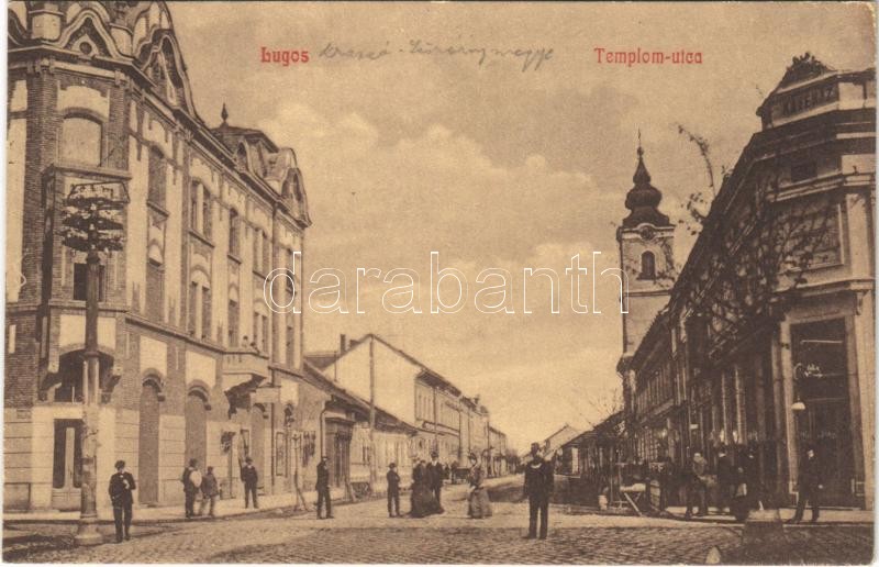 1913 Lugos, Lugoj; Templom utca, kávéház / street, cafe https://www.darabanth.com/hu/387-Gyorsarveres/387.0/Kepeslapok/Erdely~2000005/1913-Lugos-Lugoj-Templom-utca-kavehaz-street-cafe~II2317881