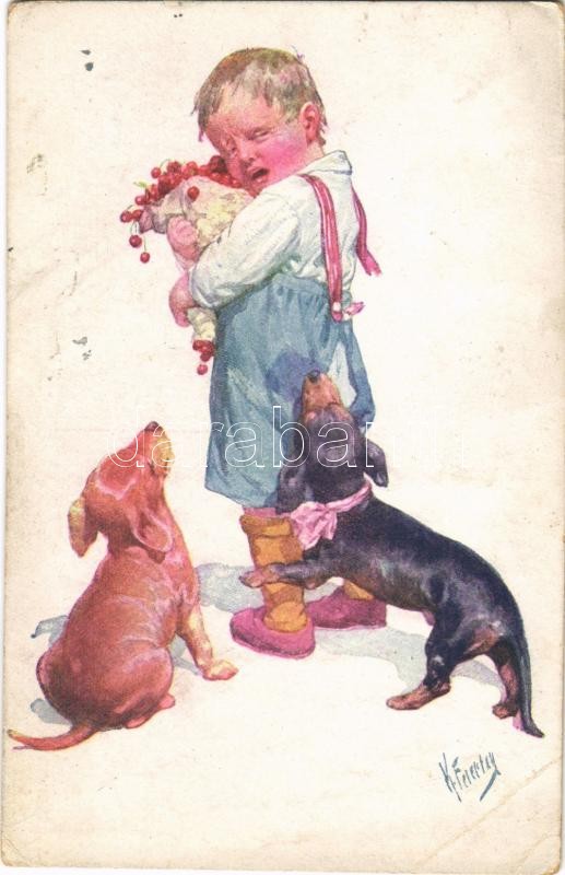 1919 Children art postcard, boy with dogs. B.K.W.I. 828/4. s: K. Feier... https://www.darabanth.com/hu/387-Gyorsarveres/387.0/Kepeslapok/Gyerek~2000068/1919-Children-art-postcard-boy-with-dogs-BKWI-8284-s-K-Feiertag-EB~II2315565