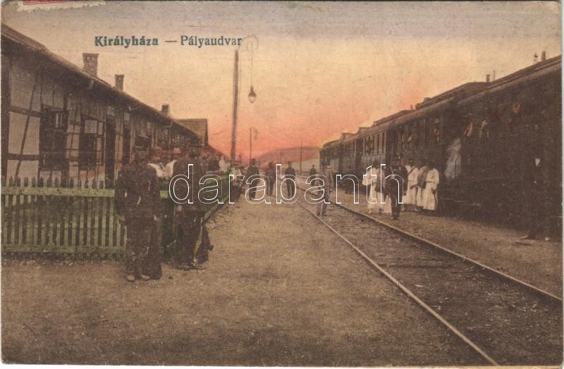 1918 Királyháza, Korolevo, Královo nad Tisou; vasútállomás, vonat. Vas... https://www.darabanth.com/hu/387-Gyorsarveres/387.0/Kepeslapok/Karpatalja~2000007/1918-Kiralyhaza-Korolevo-Kralovo-nad-Tisou-vasutallomas-vonat-Vasuti-levelezolaparusi~II2317092