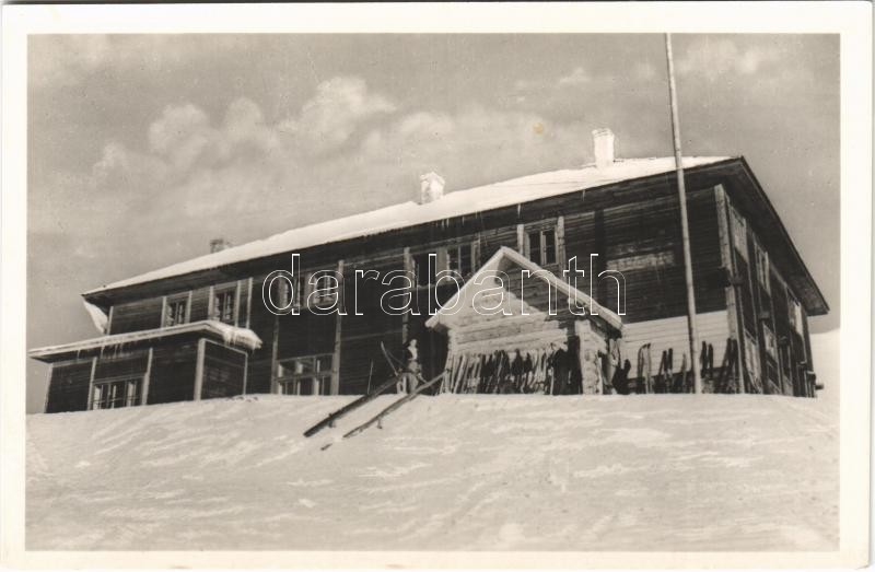 Tiszaborkút, Kvaszi, Kvasy; A Magyar Cserkészszövetség kárpátaljai menedékháza a tiszaborkúti Mencsul-Sesul nyeregben, sílécek, téli sport. Mosdóssy Endre felvétele / Hungarian boy scouts' chalet, tourist house, holiday resort, winter sport, ski