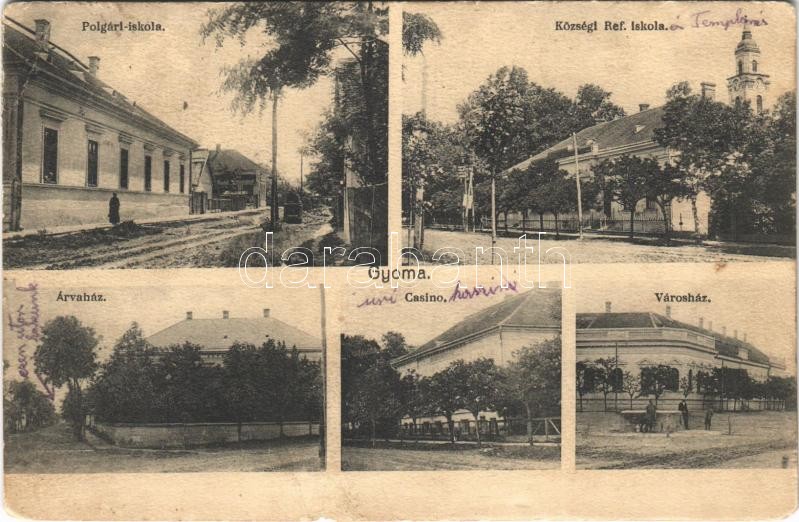 Gyoma, polgári és községi református iskola, városház, árvaház, kaszin... https://www.darabanth.com/hu/387-Gyorsarveres/387.0/Kepeslapok/Magyarorszag~2000004/Gyoma-polgari-es-kozsegi-reformatus-iskola-varoshaz-arvahaz-kaszino-casino-EK~II2317189