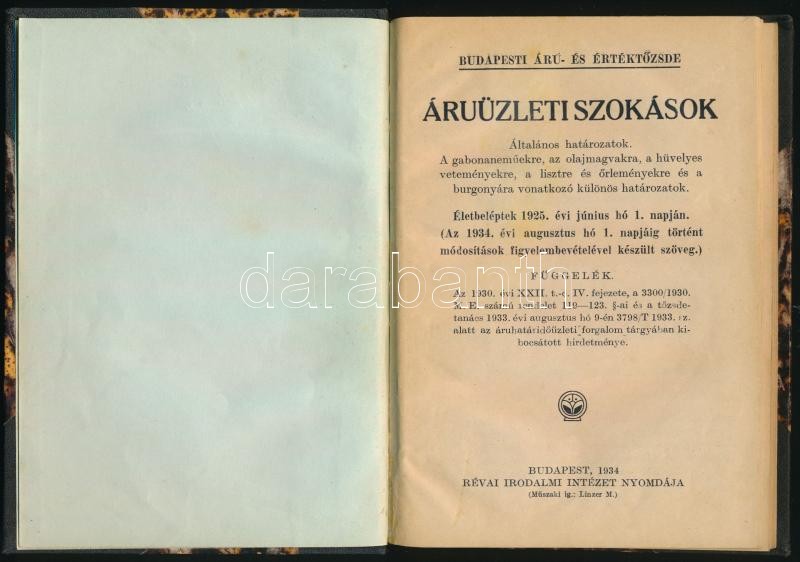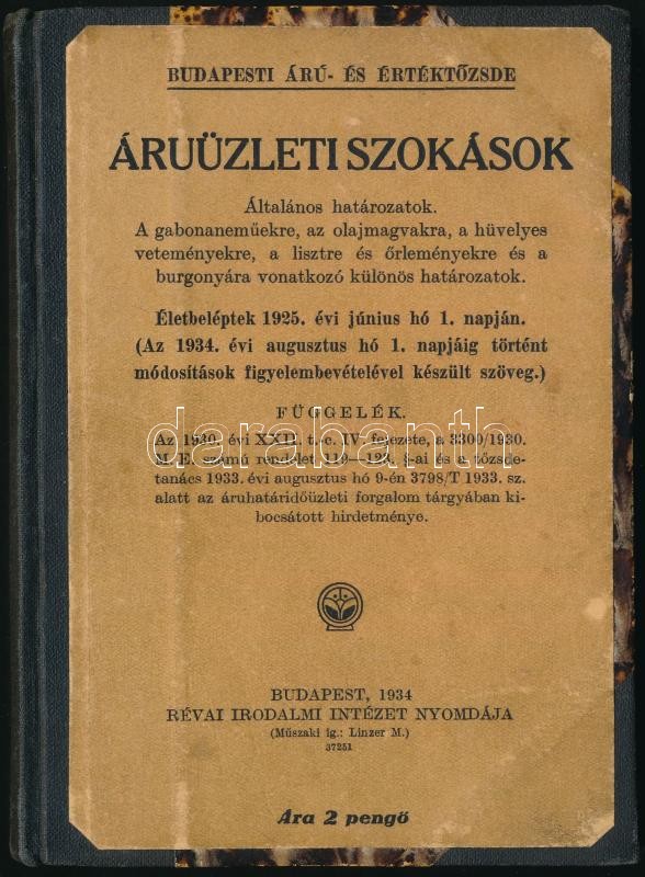 Budapesti Árú - És Értéktőzsde. Áruüzleti szokások. Bp., 1934, Révai. ... https://www.darabanth.com/hu/387-Gyorsarveres/387.0/Konyvek/Konyvek-Egyeb-ritkasagok~1000018/Budapesti-Aru-Es-Ertektozsde-Aruuzleti-szokasok-Bp-1934-Revai-Felvaszon-kotesb~II2319253