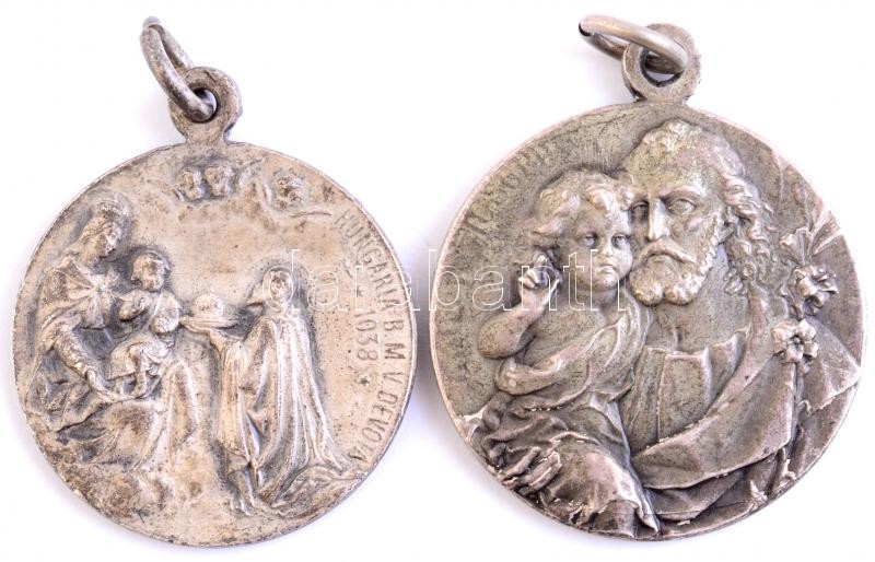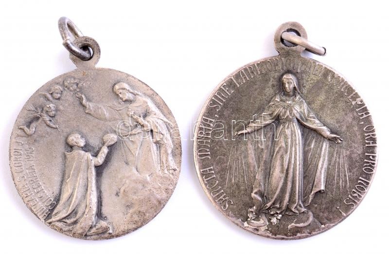 Leírás: 2 db ezüstözött vallásos érem medál formában, d: 3 cm
