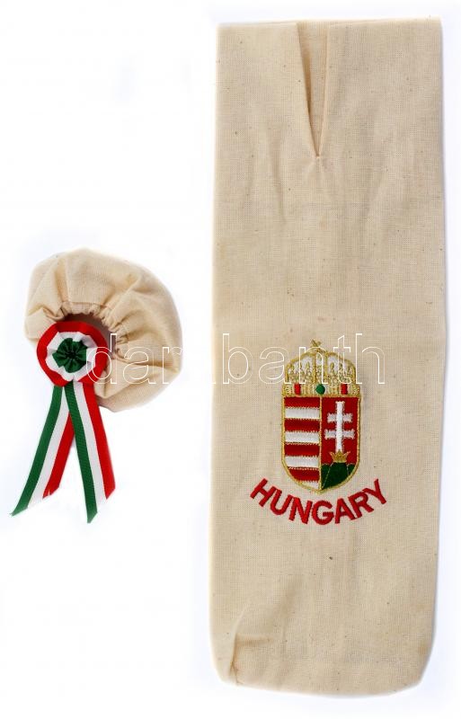 Leírás: Kokárda és címeres vászon bortartó, 15x10,5 cm, 36,5x12 cm
