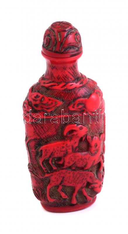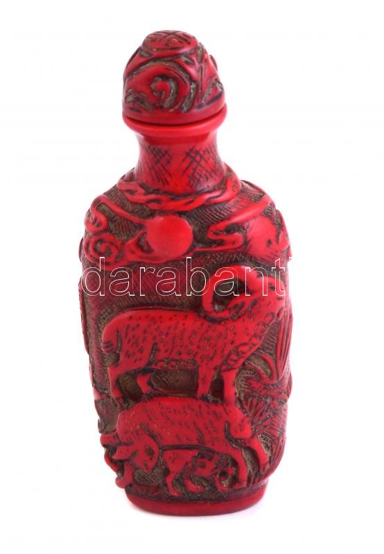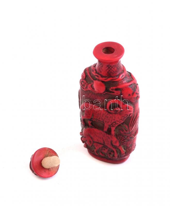 Leírás: Korallból faragott parfümös üveg, jelzett, m: 9 cm