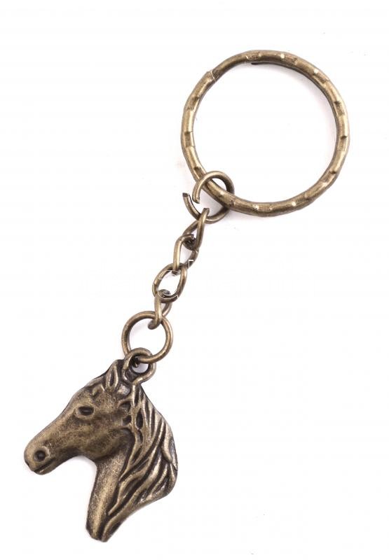 Leírás: Rézszínű lófejes kulcstartó, jó állapotban, h: 8 cm