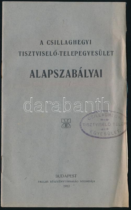1912 A Csillaghegyi Tisztviselő Telepegyesület alapszabályai gyűrődéss... https://www.darabanth.com/hu/387-Gyorsarveres/387.0/Mutargy-papirregiseg-egyeb/Nyomtatvanyok~33/1912-A-Csillaghegyi-Tisztviselo-Telepegyesulet-alapszabalyai-gyurodessel-16p~II2316173