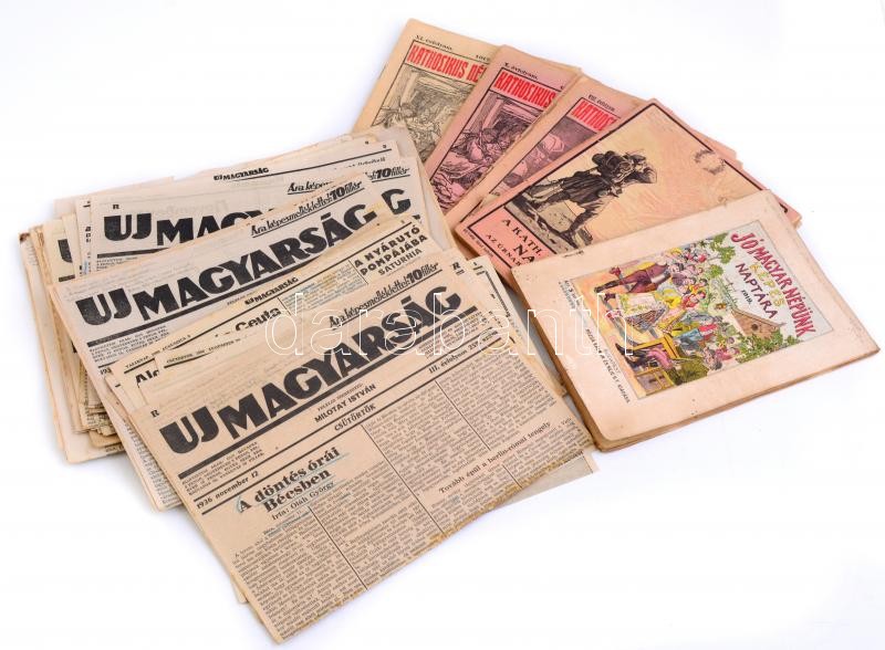1917-1936 Vegyes újság tétel, nagyrészt cikk gyűjtemény főleg az 1936-os évből (Budapesti Hírlap, Pesti Hírlap), valamint a Katholikus Népszövetség 4 száma (1913-1917.) Valamint két hiányos, 1919-es naptárral. Változó állapotban.