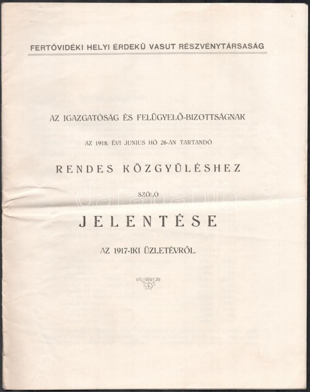 1918 Fertővidéki Helyi Érdekű Vasút Részvénytársaság igazgatóságának é... https://www.darabanth.com/hu/387-Gyorsarveres/387.0/Mutargy-papirregiseg-egyeb/Nyomtatvanyok~33/1918-Fertovideki-Helyi-Erdeku-Vasut-Reszvenytarsasag-igazgatosaganak-es-felugyelobizo~II2319631