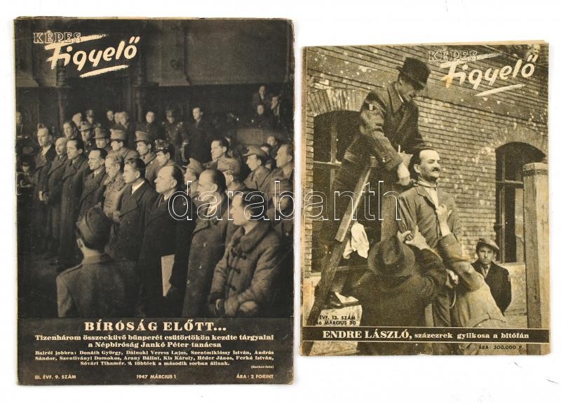 Leírás: 1946-1947 Képes Figyelő 1946. márc. 30., 1947. márc. 1. A címlapon Endre László akasztásával és a Magyar Közösség perének tárgyalásával.
