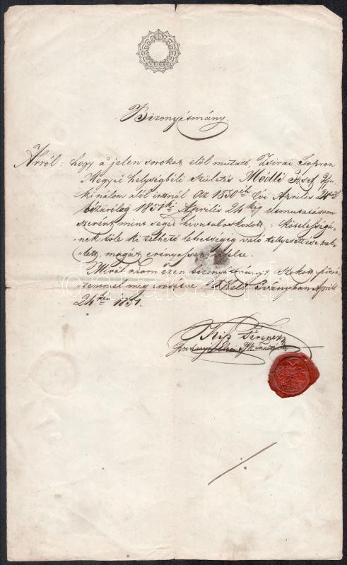 1851-1870 3 db bizonyítmány, viaszpecséttel, szárazpecséttel, okmánybé... https://www.darabanth.com/hu/387-Gyorsarveres/387.0/Mutargy-papirregiseg-egyeb/Okmanyok~20/1851-1870-3-db-bizonyitmany-viaszpecsettel-szarazpecsettel-okmanybelyeggel~II2322130