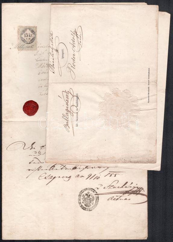 Leírás: 1851-1870 3 db bizonyítmány, viaszpecséttel, szárazpecséttel, okmánybélyeggel
