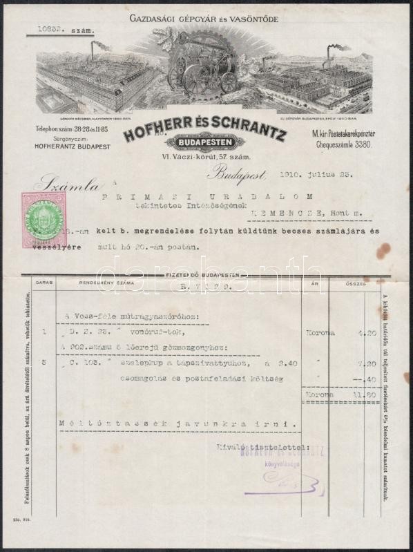 Leírás: 1910 2 db fejléces számla (Hofherr és Schrantz, Clayton & Shuttleworth)