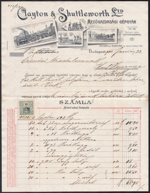 1910 2 db fejléces számla (Hofherr és Schrantz, Clayton & Shuttleworth... https://www.darabanth.com/hu/387-Gyorsarveres/387.0/Mutargy-papirregiseg-egyeb/Okmanyok~20/1910-2-db-fejleces-szamla-Hofherr-es-Schrantz-Clayton-Shuttleworth~II2315325