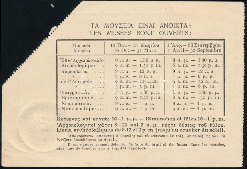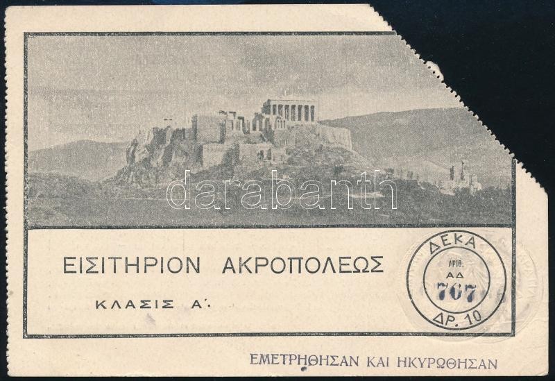 Régi belépőjegy az Akropoliszra https://www.darabanth.com/hu/387-Gyorsarveres/387.0/Mutargy-papirregiseg-egyeb/Okmanyok~20/Regi-belepojegy-az-Akropoliszra~II2319108