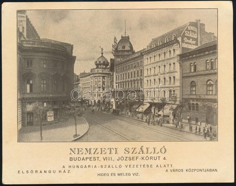 cca 1910-1920 Bp., Nemzeti Szálló (VIII. József-körút 4.) magyar és né... https://www.darabanth.com/hu/387-Gyorsarveres/387.0/Mutargy-papirregiseg-egyeb/Reklam~24/cca-1910-1920-Bp-Nemzeti-Szallo-VIII-Jozsef-korut-4-magyar-es-nemet-nyelven-reklam-ka~II2321815