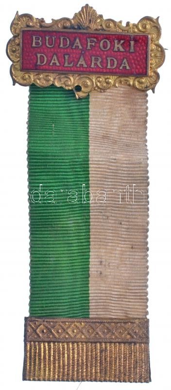 Leírás: ~1900. "Budafoki Dalárda" aranyozott, zománcozott fém jelvény szalaggal (24x40mm) T:2 kis zománchiba