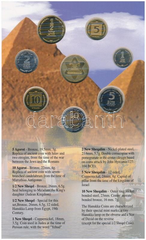 Izrael 2007. 1a - 10NS (7xklf) forgalmi sor dísztokban + 1/2NS Br "Egyiptomi Hanukkah-lámpa" T:1