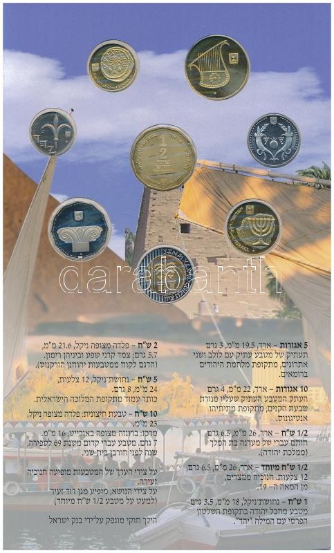 Israel 2007. 1 Agora - 10 New Sheqel (7xdiff) coin set in display case + 1/2 New Sheqek "Hanukkah - Egyiptian lamp" C:UNC