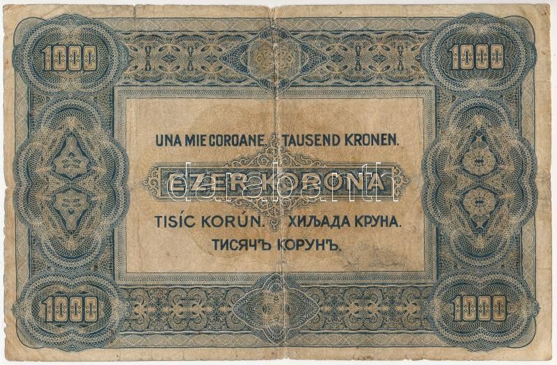 1920. 1000K "Orell Füssli Zürich" T:III- ly. Adamo K36 https://www.darabanth.com/hu/387-Gyorsarveres/387.0/Numizmatika/Magyar-bankjegyek~1500007/1920-1000K-Orell-Fussli-Zurich-TIII-ly-Adamo-K36~II2323015