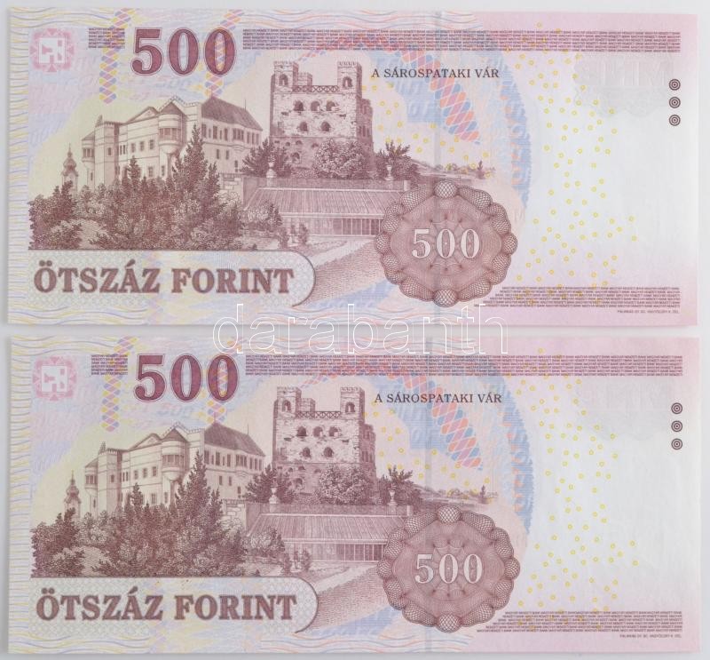 Hungary 2007. 500 Forint "EA 9885114" + 500 Forint "EB 1709613" C:UNC
