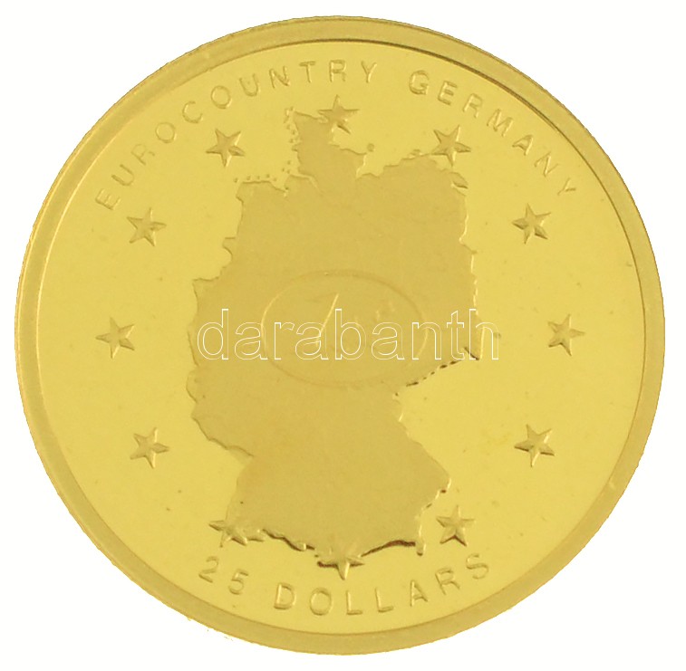 Libéria 2003. 25$ Au "A világ legkisebb aranyérméi / Euroövezet - Németország" számozott tanúsítvánnyal (0,73g/0.999/11mm) T:PP