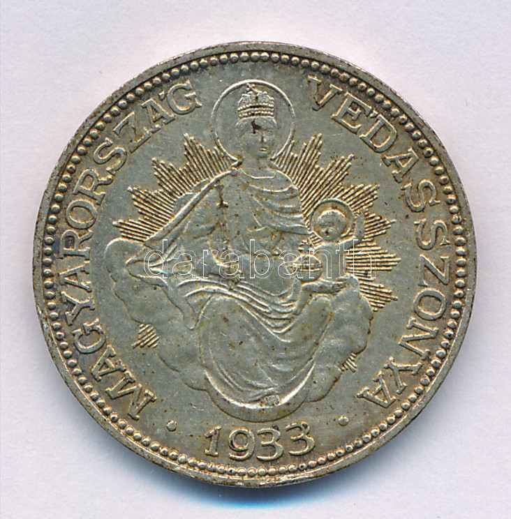 1933. 2P Ag "Madonna" T:1- patina Adamo P7 https://www.darabanth.com/hu/387-Gyorsarveres/387.0/Numizmatika/Magyar-es-magyar-verdejelu-fem-es-ezustpenzek~1500021/1933-2P-Ag-Madonna-T1-patina-Adamo-P7~II2317131