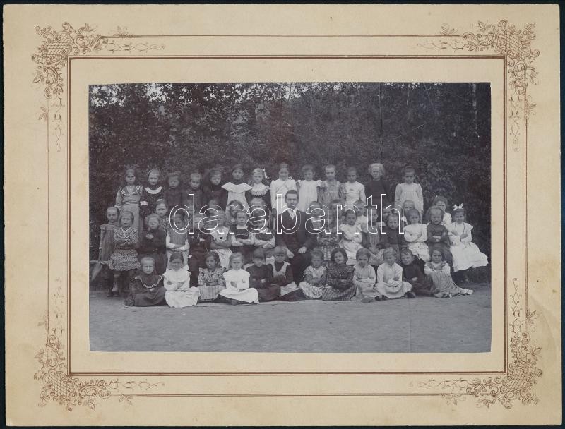 Leírás: cca 1906 Miskolc, Forstné Váncza Emma fényképész pecsétjével jelzett, iskolai csoportkép, 10x15 cm, karton 16x21cm
