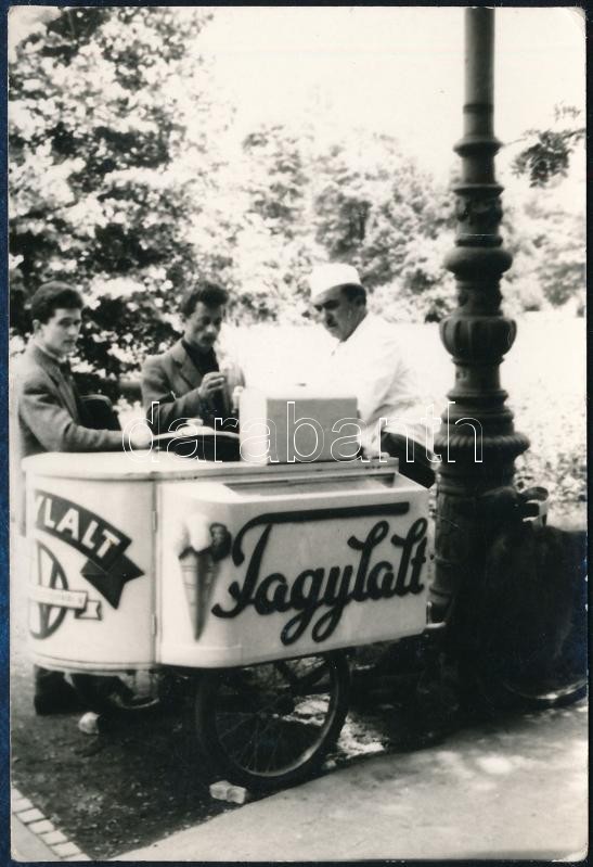 cca 1950 Fagylaltárus, fotó, 9,5×6,5 cm https://www.darabanth.com/hu/388-Gyorsarveres/388.0/Fotomuveszet/Foto~500021/cca-1950-Fagylaltarus-foto-9-5C3976-5-cm~II2332251
