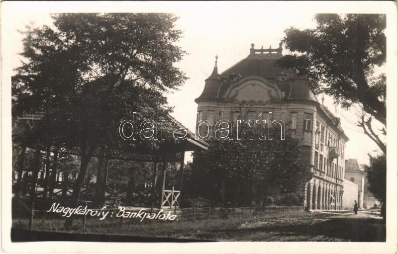 1943 Nagykároly, Carei; Bankpalota / bank palace https://www.darabanth.com/hu/388-Gyorsarveres/388.0/Kepeslapok/Erdely~2000006/1943-Nagykaroly-Carei-Bankpalota-bank-palace~II2330394