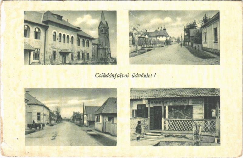 Csíkdánfalva, Danesti; utca, Hangya üzlet, templom, iskola / streets, ... https://www.darabanth.com/hu/388-Gyorsarveres/388.0/Kepeslapok/Erdely~2000006/Csikdanfalva-Danesti-utca-Hangya-uzlet-templom-iskola-streets-cooperative-shop-church-s~II2334286