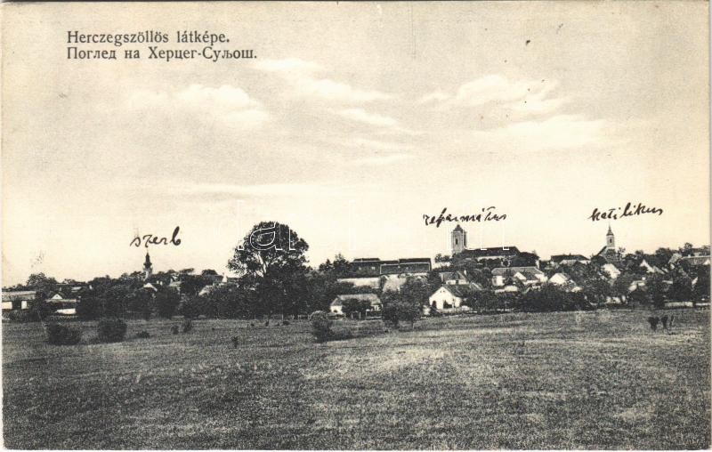 1914 Hercegszöllős, Hercegszőlős, Knezevi Vinogradi; látkép, szerb, református és katolikus templom. Popovits D. kiadása. Beismann K. fényképész / general view with Serbian Orthodox, Calvinist and Catholic churches