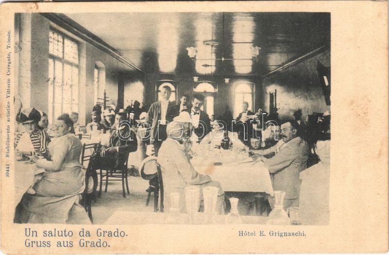 1908 Grado, Hotel E. Grignaschi / hotel, restaurant, interior with gue... https://www.darabanth.com/hu/388-Gyorsarveres/388.0/Kepeslapok/Olaszorszag~2000043/1908-Grado-Hotel-E-Grignaschi-hotel-restaurant-interior-with-guests-and-waiters-Vittorio-Cere~II2330941