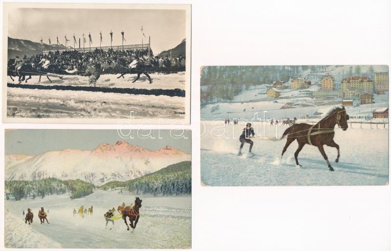 Leírás: 5 db RÉGI téli sport motívum képeslap: lovas és szarvas síelők / 5 pre-1945 winter sport motive postcards: horse and deer skiing