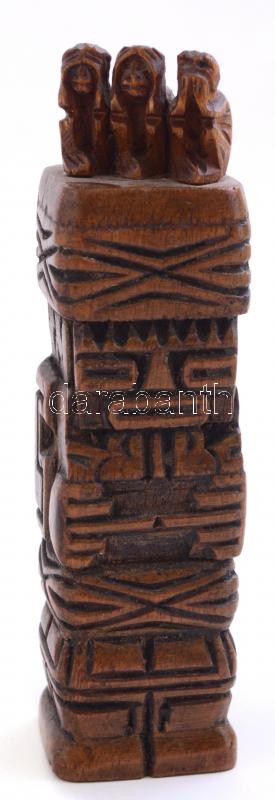 Leírás: Miniatűr fafaragás, három majom motívummal, m: 12 cm