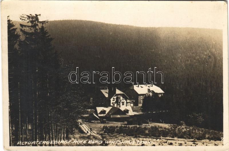 Leírás: Hruby Jeseník, Altvatergebirge; Rote Berg Wirtshaus / inn, tourist house. photo (EK)