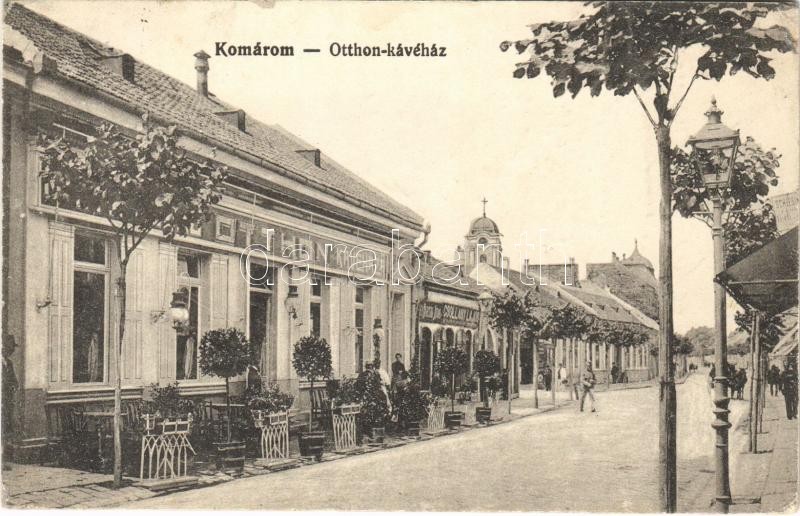 Leírás: 1918 Komárom, Komárnó; Otthon kávéház, Csollány Lajos üzlete / cafe, shop (r)