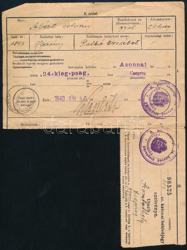 1940 Katonai behívó, Csepregről küldve, ajánlott, expressz küldemény https://www.darabanth.com/hu/389-Gyorsarveres/389.0/Mutargy-papirregiseg-egyeb/Militaria~28/1940-Katonai-behivo-Csepregrol-kuldve-ajanlott-expressz-kuldemeny~II2336147