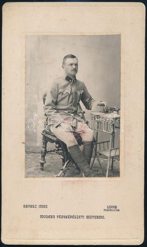 Leírás: cca 1910 Katona műtermi fotója kartonon. Lippa. 25x15 cm
