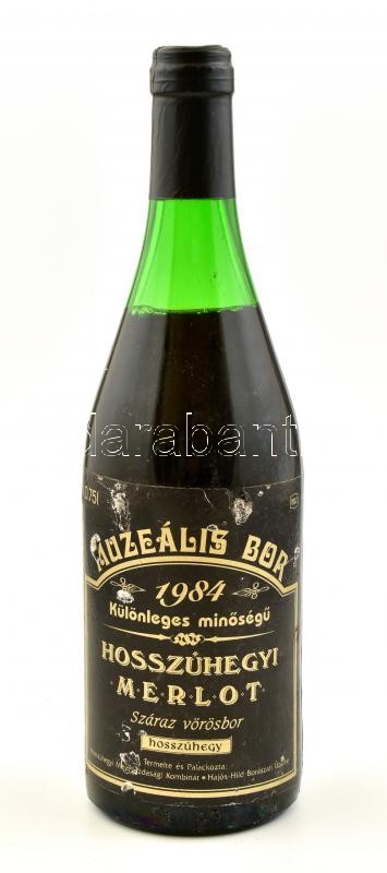 Leírás: 1984 Muzeális bor: hosszúhegyi merlot, száraz vörösbor, 0,75 l bontatlan palack