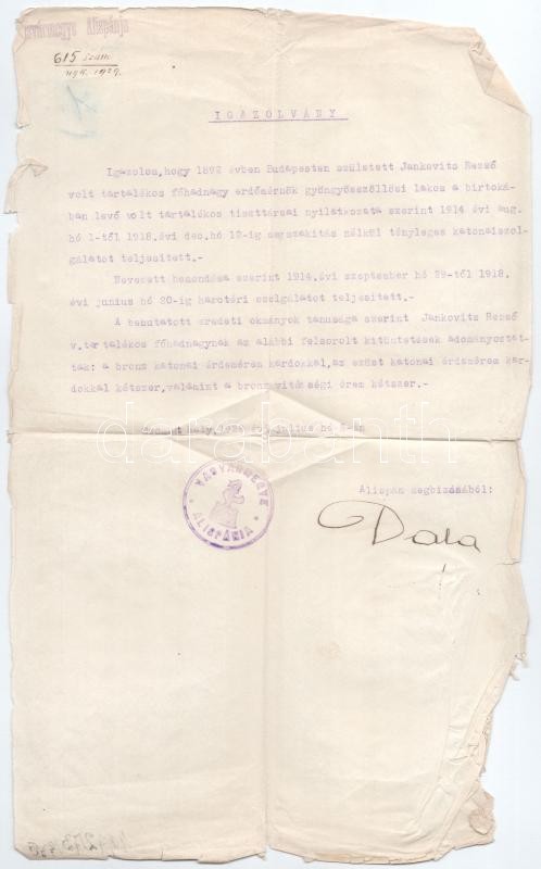 1929 Igazolvány hactéri szolgálatról és érdemrendek adományozásáról https://www.darabanth.com/hu/389-Gyorsarveres/389.0/Mutargy-papirregiseg-egyeb/Nyomtatvanyok~31/1929-Igazolvany-hacteri-szolgalatrol-es-erdemrendek-adomanyozasarol~II2341950